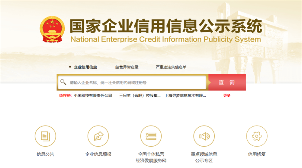 国家企业信用信息公示系统:
