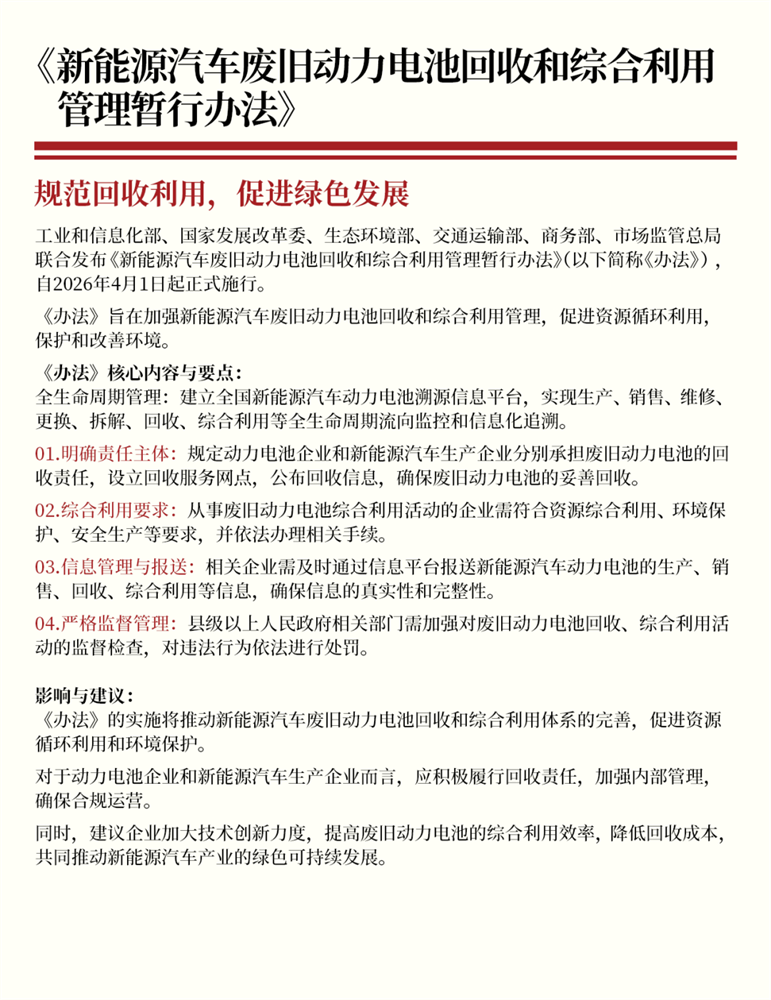 ○《新能源汽车废旧动力电池回收和综合利用管理暂行办法》